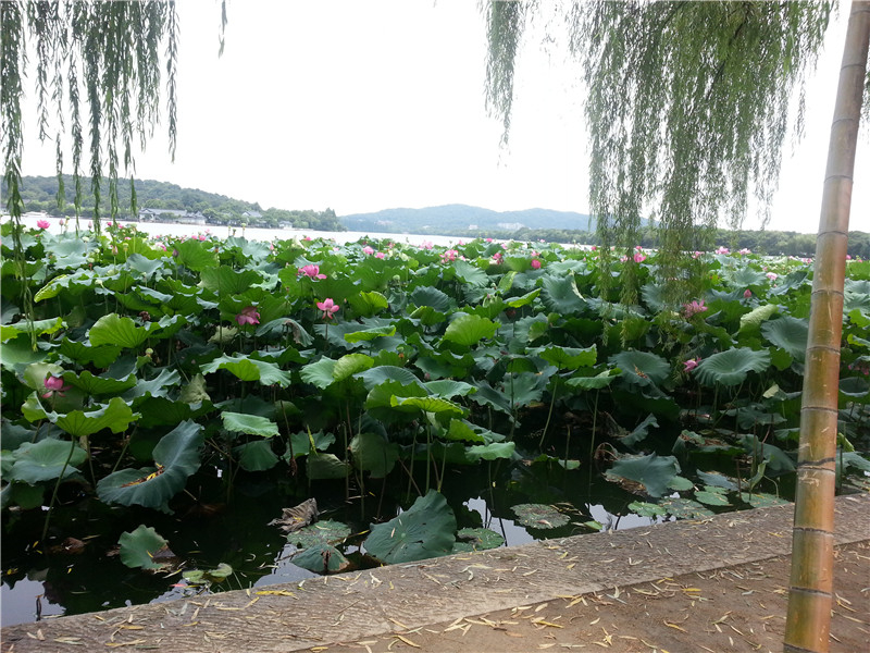 杭州西湖草地一角,清新迷人